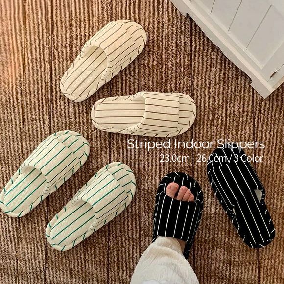 韓国っぽさ満点のストライプ柄ルームスリッパ。シンプルなのに、どこか洗練されたデザインが魅力的です。ナチュラルカラーのストライプなので、どんなルームウェアとも相性抜群。