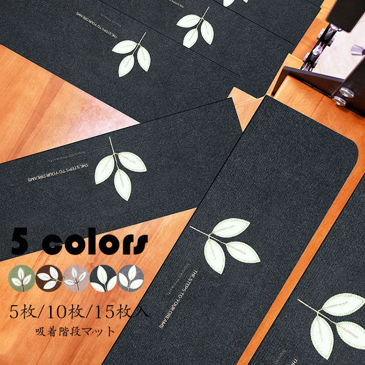 階段マット 吸着 蛍光 滑り止め 折り曲げ 防音 三つ葉柄 おしゃれ ペット 犬 蓄光式 足冷え 介護 高齢者 転倒防止 洗える キズ防止 おくだけ吸着 ずれない 5/10/15枚セット 選べる5色