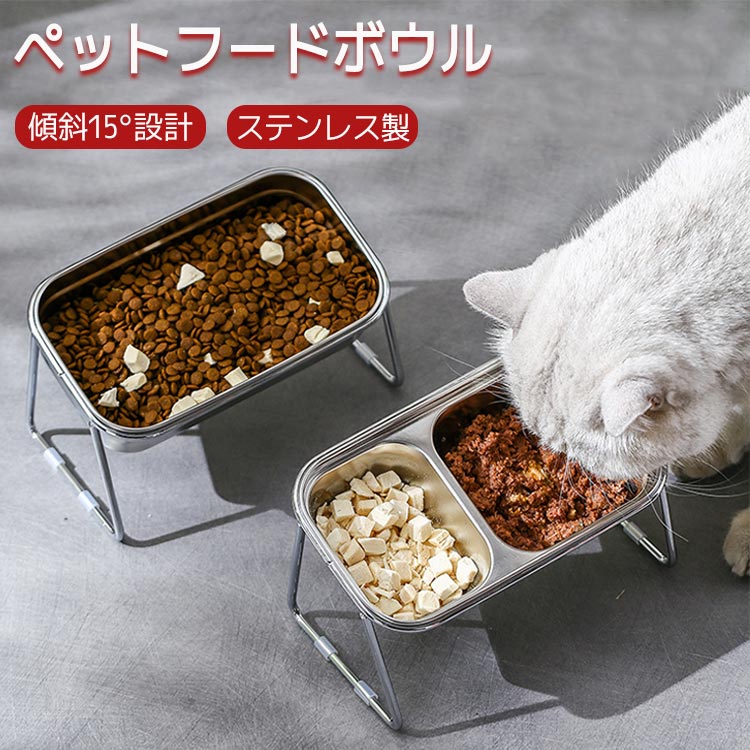 ペット フードボール ペットボウル ステンレス製 餌皿 餌入れ 猫 食器台 多頭 多頭飼い 高さ 斜め おしゃれ 傾斜 水 餌 入れ 食べやすい 猫用 水飲み 猫餌皿 猫食器台 猫餌入れ 犬