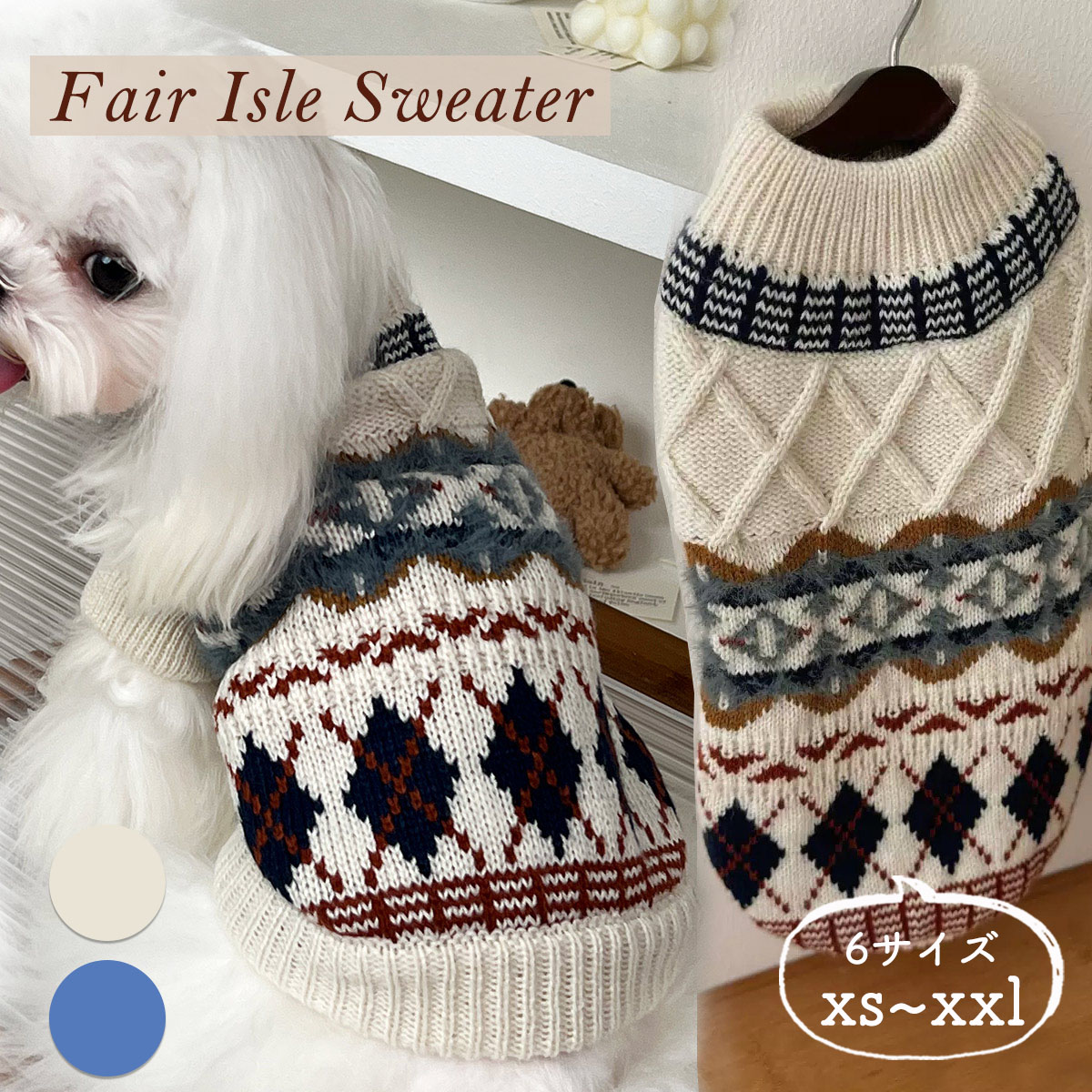 犬服 セーター 秋冬 暖かい フェアアイル柄 防寒 小型犬 中型犬 ドッグウェア ニット 可愛い トップス ニットセーター かわいい 部屋着 着せやすい 柔らかい 服 あったか 女の子 犬
