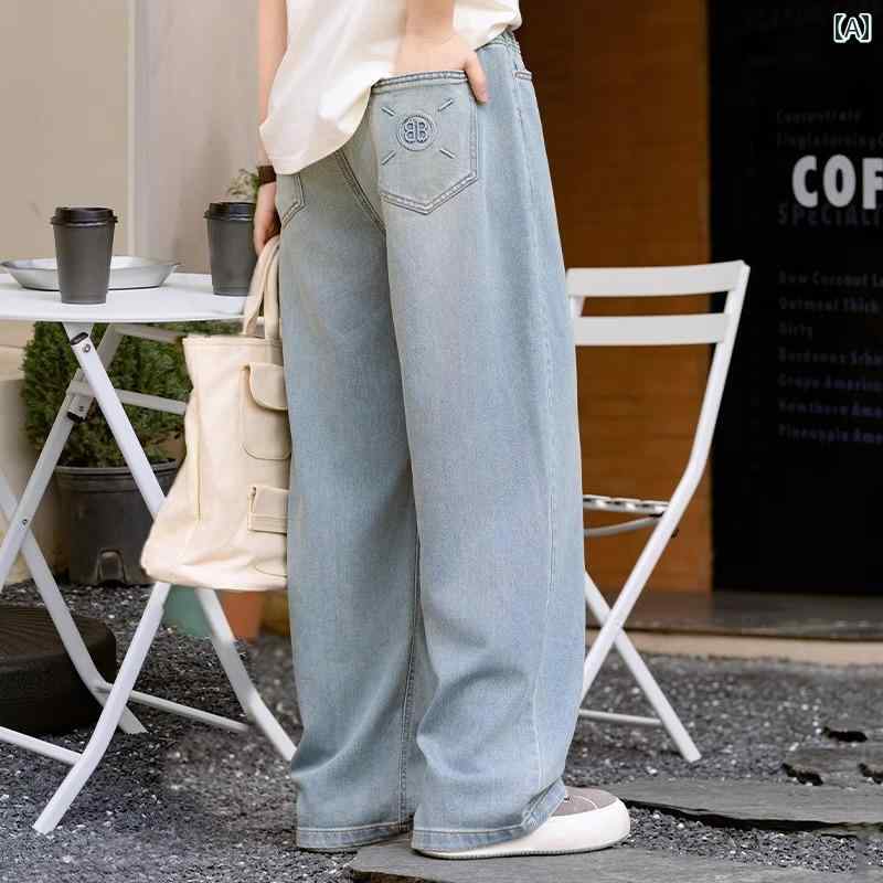 ガールズ ファッション レディース パンツ 中学生 夏用 薄手 ジーンズ 女の子 ゆったり ワイド ズボン 高校生