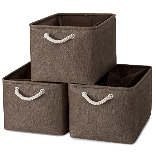 MiyabiLife 収納ボックス 収納バスケット 収納かご 3個セット 幅40×奥行30×高さ24cm 巾着式ふた付き 折りたたみ 大容量 収納ケース おしゃれ 天然綿麻 無臭 小物 衣類 CD 服