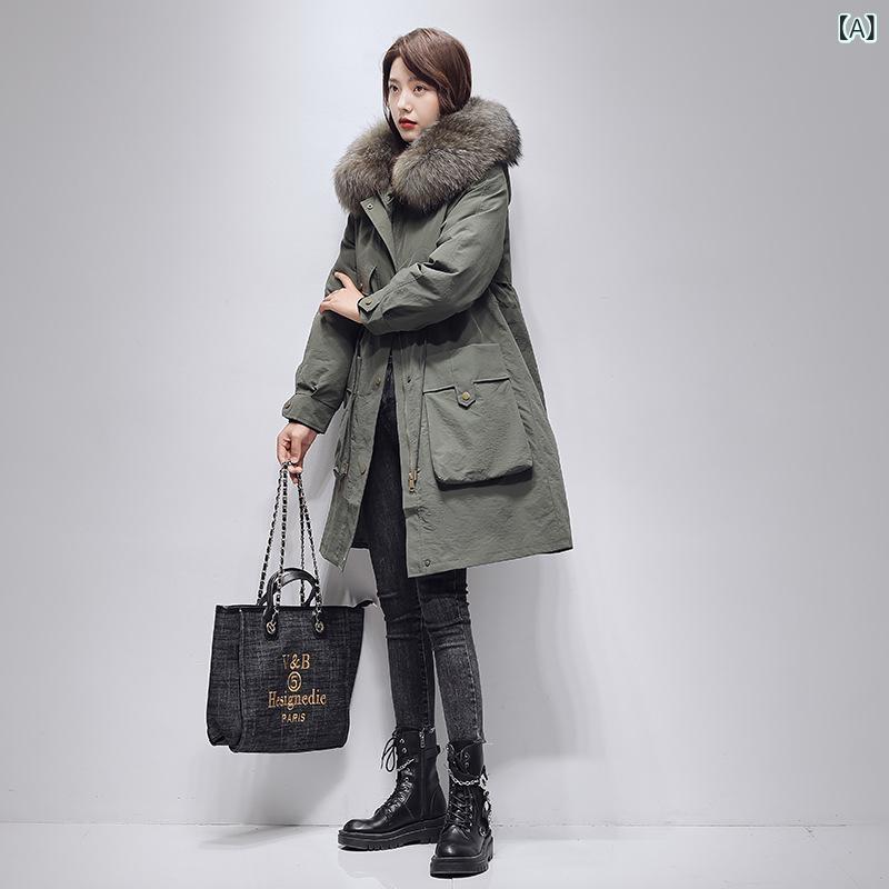 コート レディース モッズコート パーカー 取り外し可能 レッキスラビットファーライナー フード付き ミドル丈 冬 長袖 きれいめ カジュアル 通勤 オフィス カーキ チャコールグレー リア デイリー