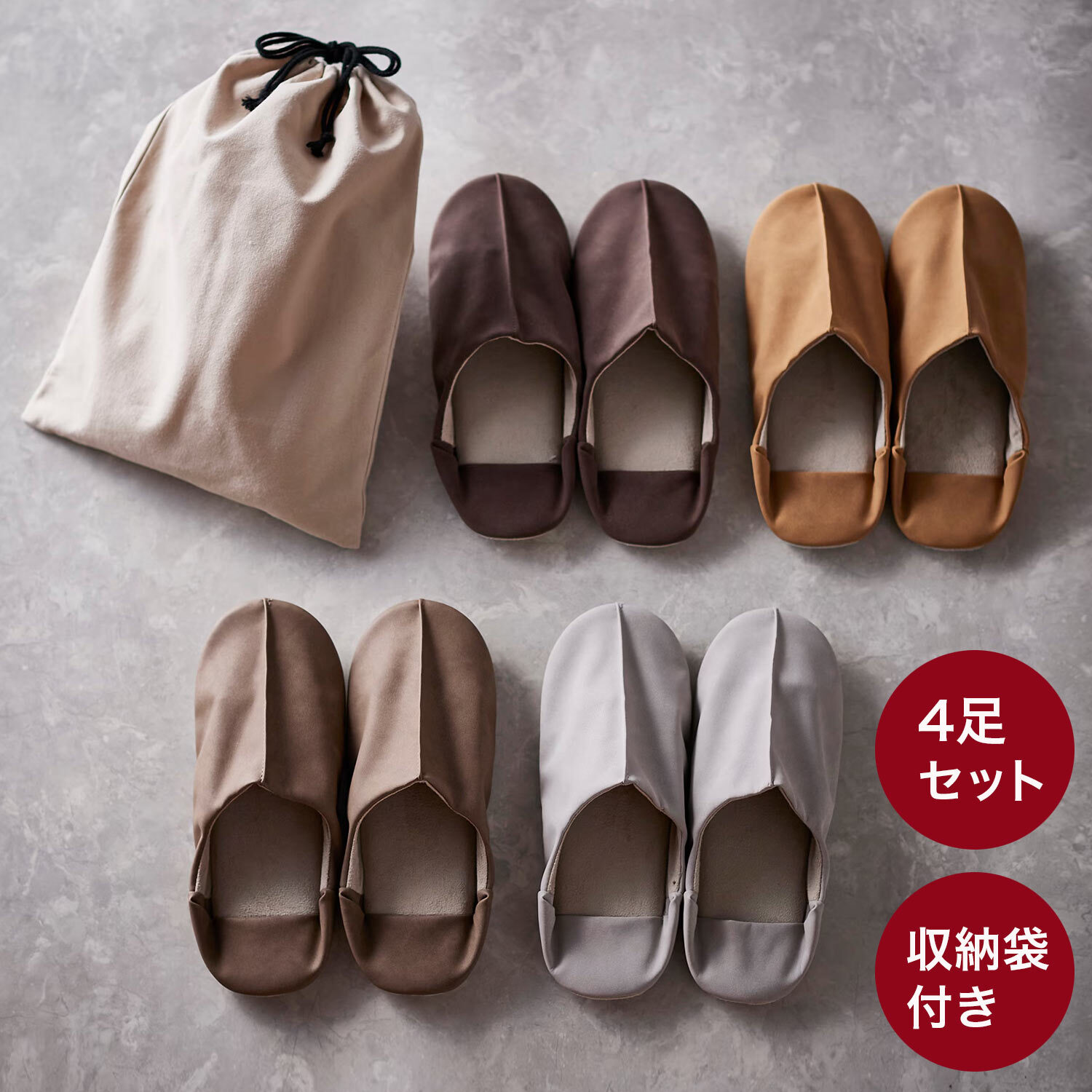 スリッパ 収納袋付 コンパクト 洗える | 24-26cm マット 合皮 洗濯機OK 来客 男女兼用 まとめ買い セット レディース メンズ ベーシック 室内スリッパ 室内 ユニセックス