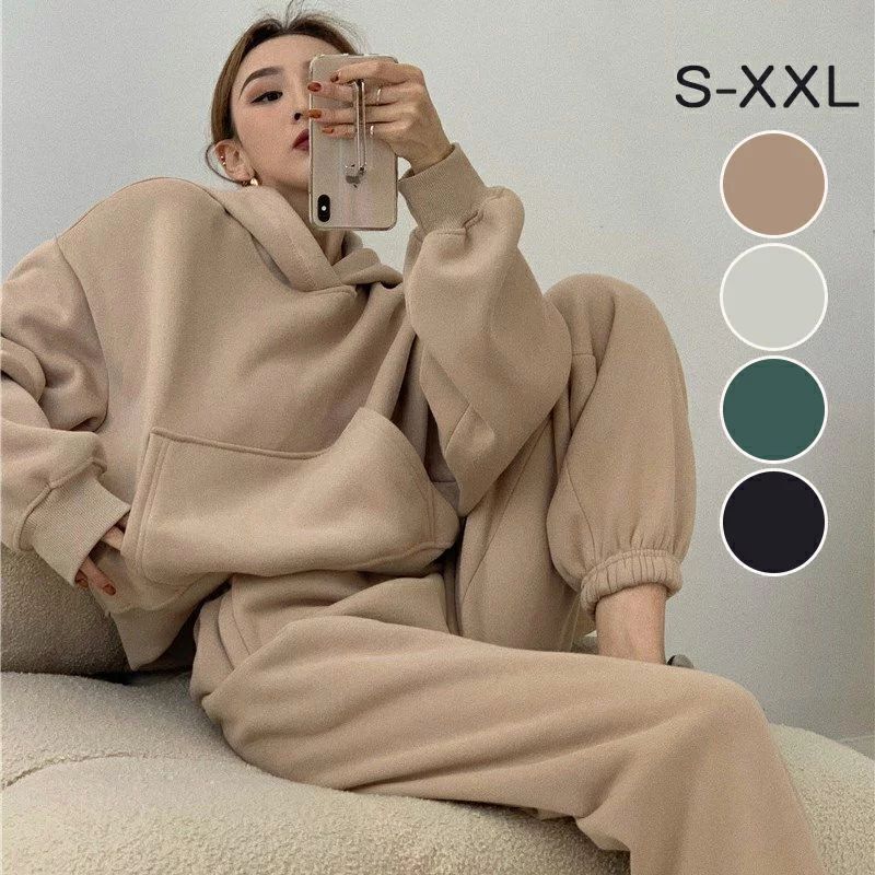 セットアップ レディース 秋冬 韓国風 きれいめ 上下セット 秋冬新作 カジュアルファッション スーツ スウェット プラス ベルベット 厚手 ツーピース スポーツウェア 2点セッ レギンス