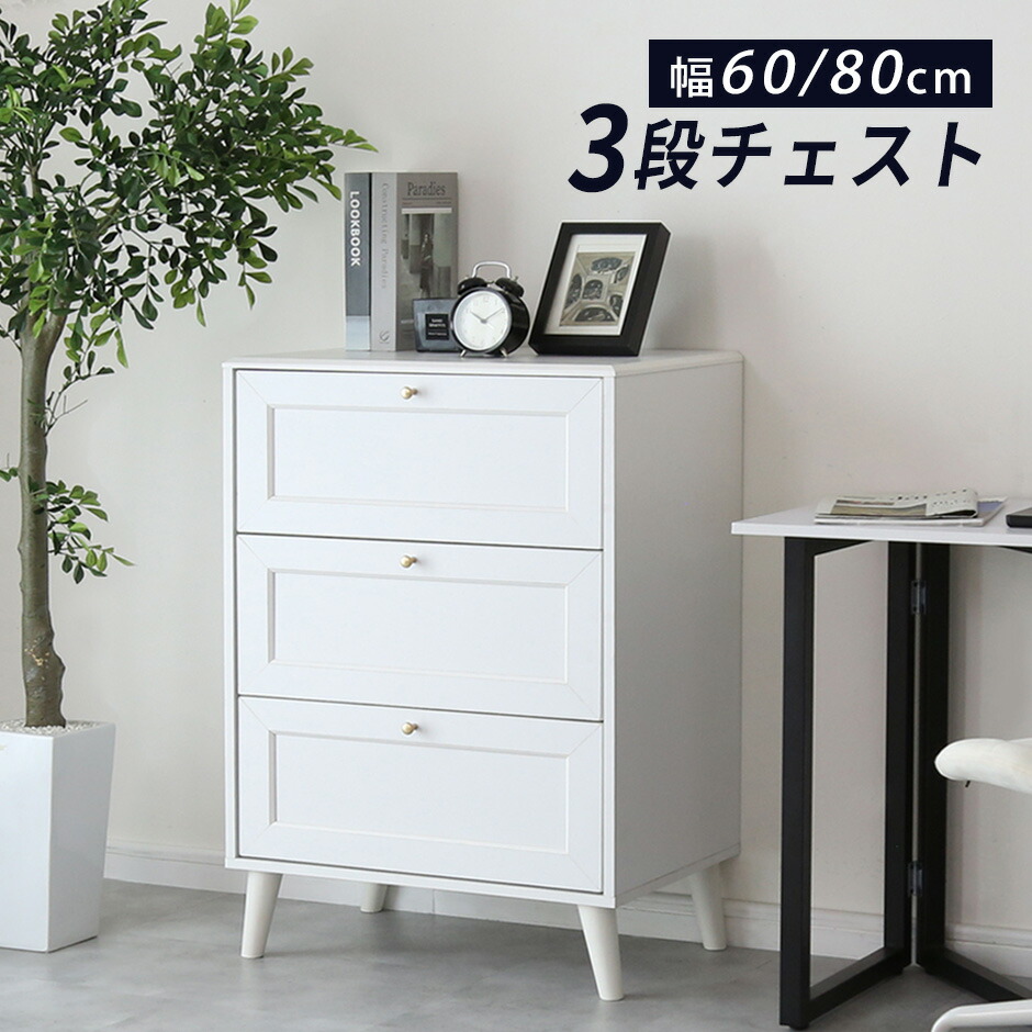 キャビネット サイドボード 韓国風 チェスト 3段 リビング 収納 ボード 幅60 幅80 木製 脚 白 ゴールド 引き出し付き 脚付き ローチェスト 姫 框デザイン かまち ホワイト